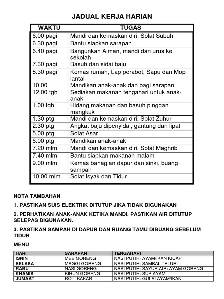 Membuat laporan harian bulanan dan tahunan membuat laporan harian bulanan tahunan dengan mudah yaitu dengan filter tanggal input data. JADUAL KERJA HARIAN PEMBANTU RUMAH TANGGA PRT 1 KERJA KERJA HARIAN PRT. Urus Masa Dengan Jadual Kerja Harian To Do List Rina Zul.